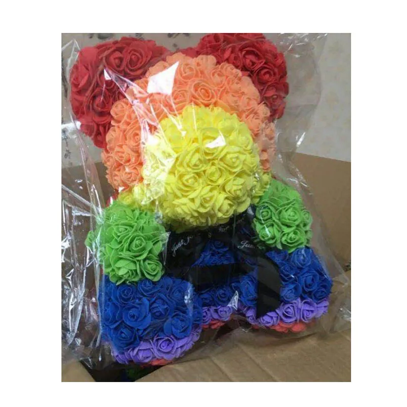 TOP Drop Shipping 40cm Rainbow Cute Rose Flower Teddy Bears Foam Bears Wedding Home Decorations Valenti