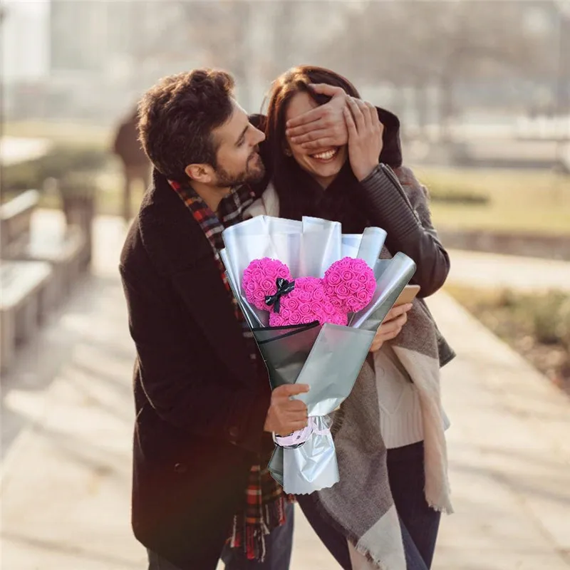 Mickey Flower Bouquet Rose Bubble Eternal Flower Bear for Wedding Mother Day Valentine's Day Gift o