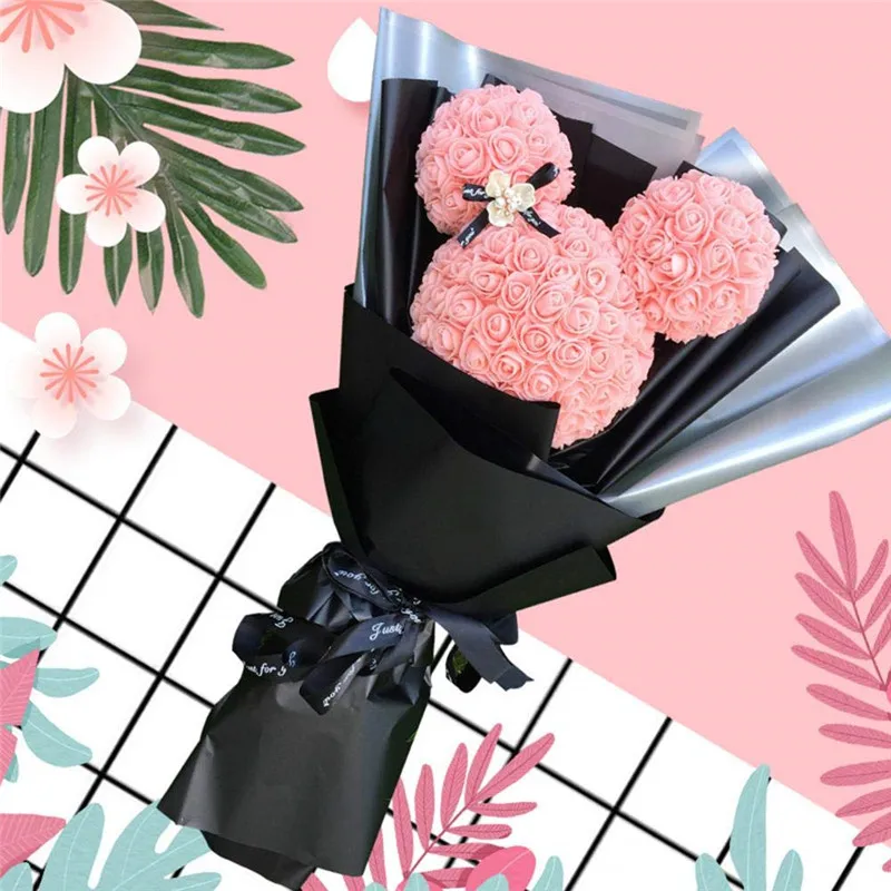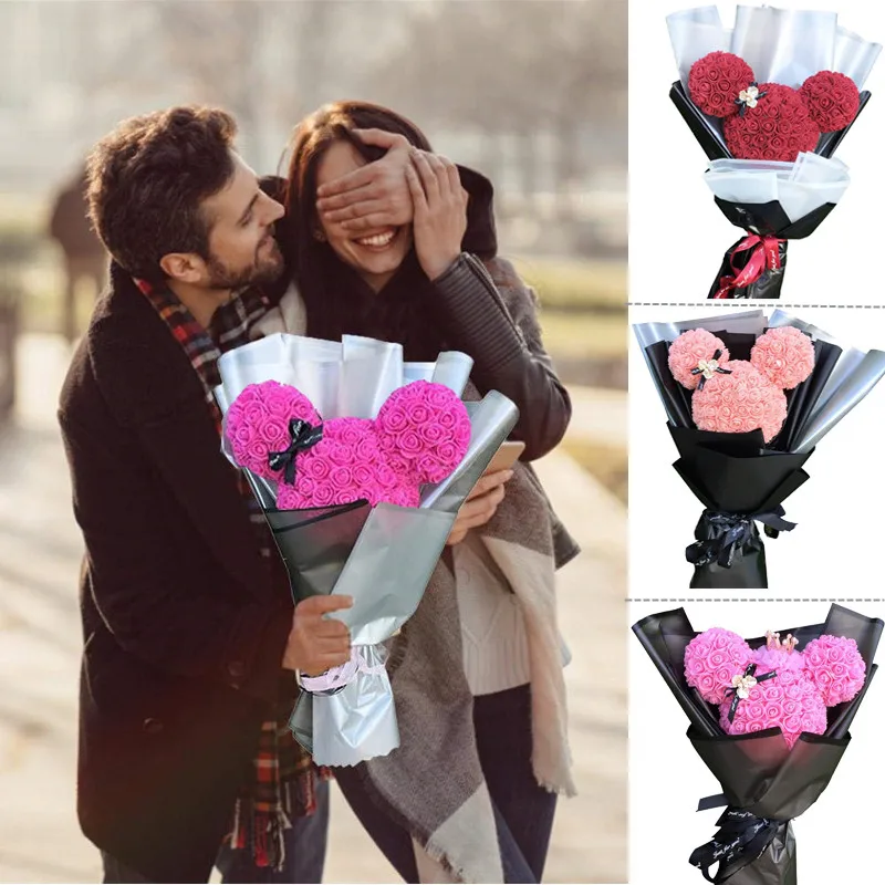 BEST QUALITY Mickey Flower Bouquet Rose Bubble Eternal Flower Bear for Wedding Mother Day Valentine's Day Gift o