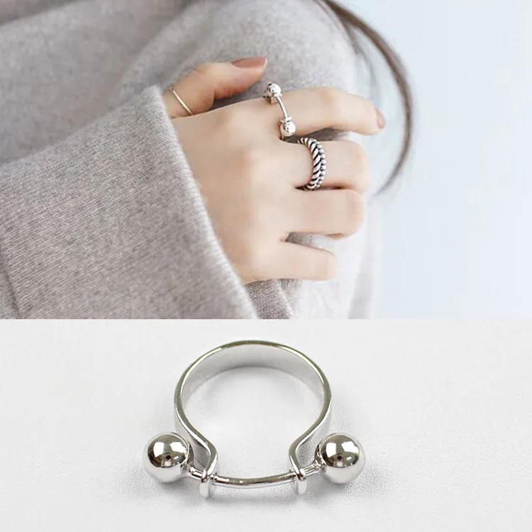 100% 925 Sterling Silver Ring 2020 Fashion CHIC Double Round Beads Ring For Women Silver Jewelry an